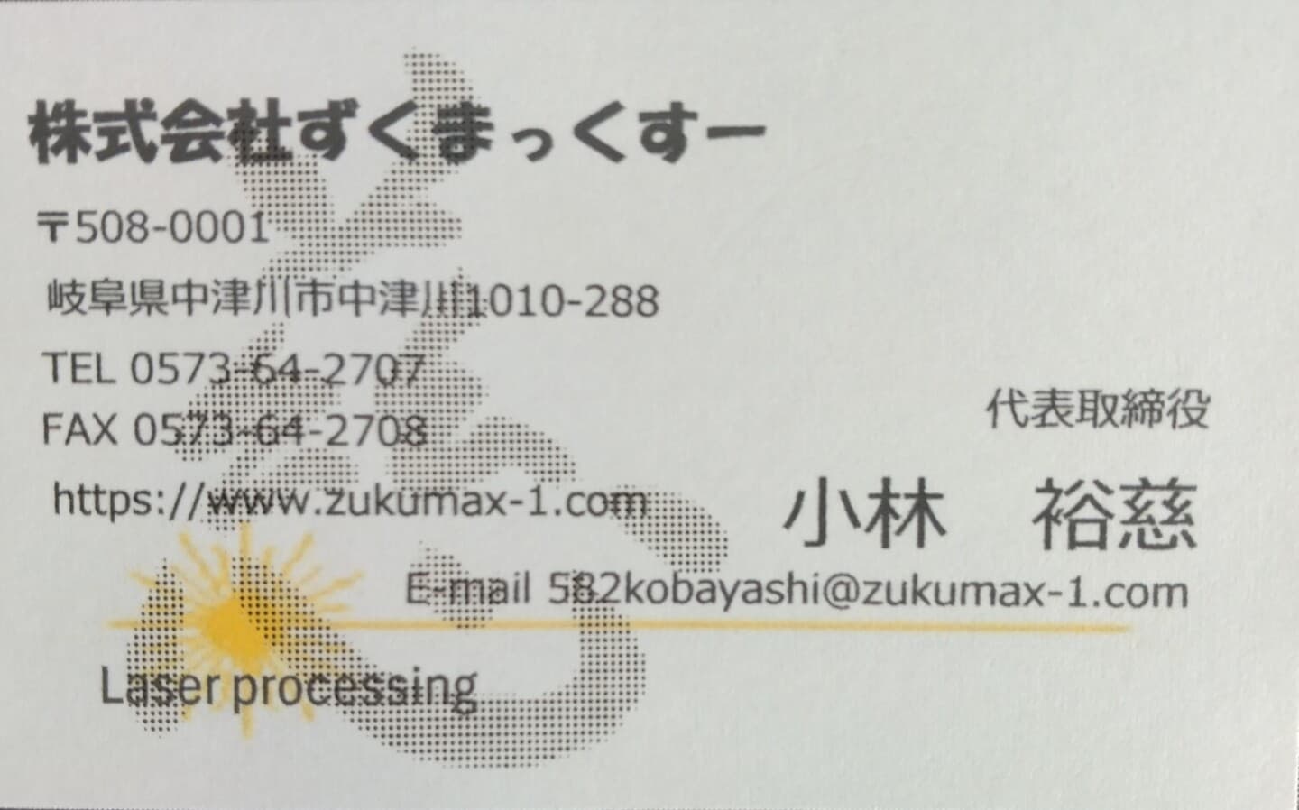 ずく名刺は、一般の名刺にロゴマークや思いを込めた漢字等を、ドット加工で透かしに加工を施したものです。